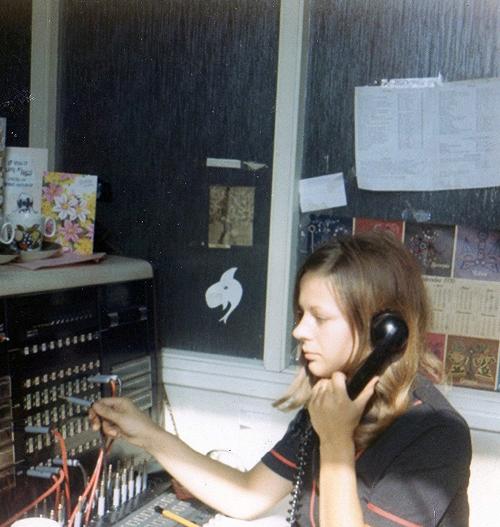 | Carol Fewster at the switchboard July 1970 |