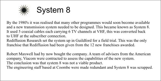 In late 1988 Maxwell Communications acquired all the UK Rediffusion networks and real estate.